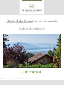 Sur une jolie parcelle entièrement close et arborée, à mi-chemin entre Genève et Lausanne, profitant d’une jolie vue dégagée sur les Alpes et le lac, grande maison de 300m2 habitables à vendre.